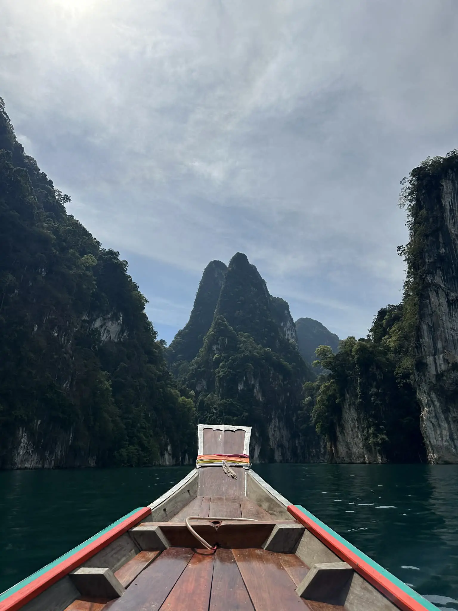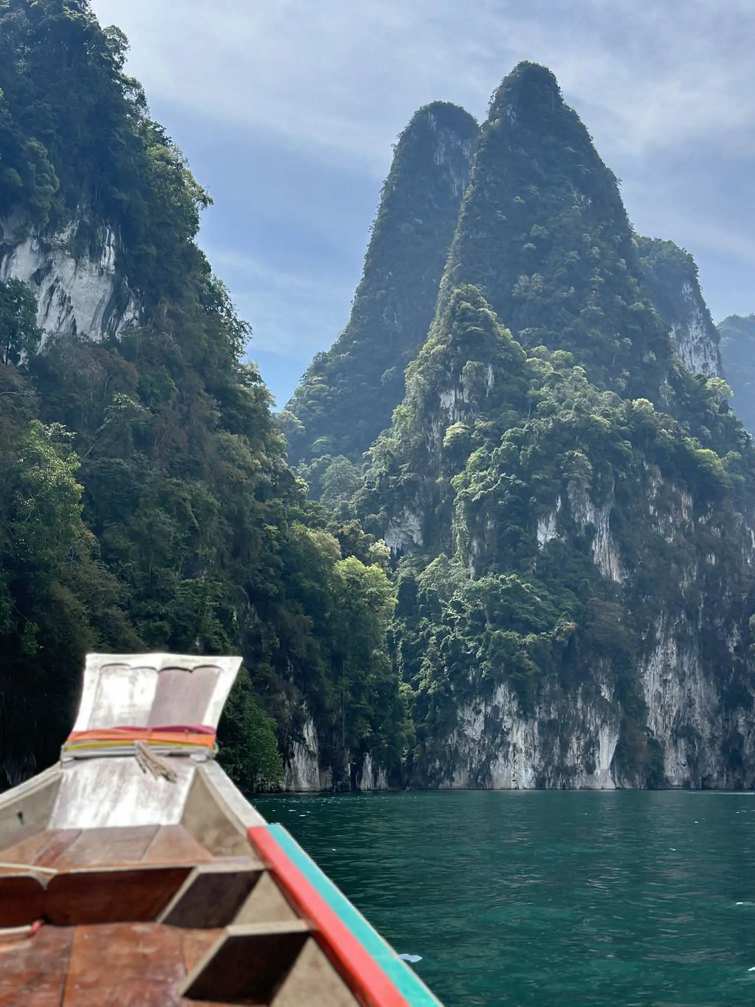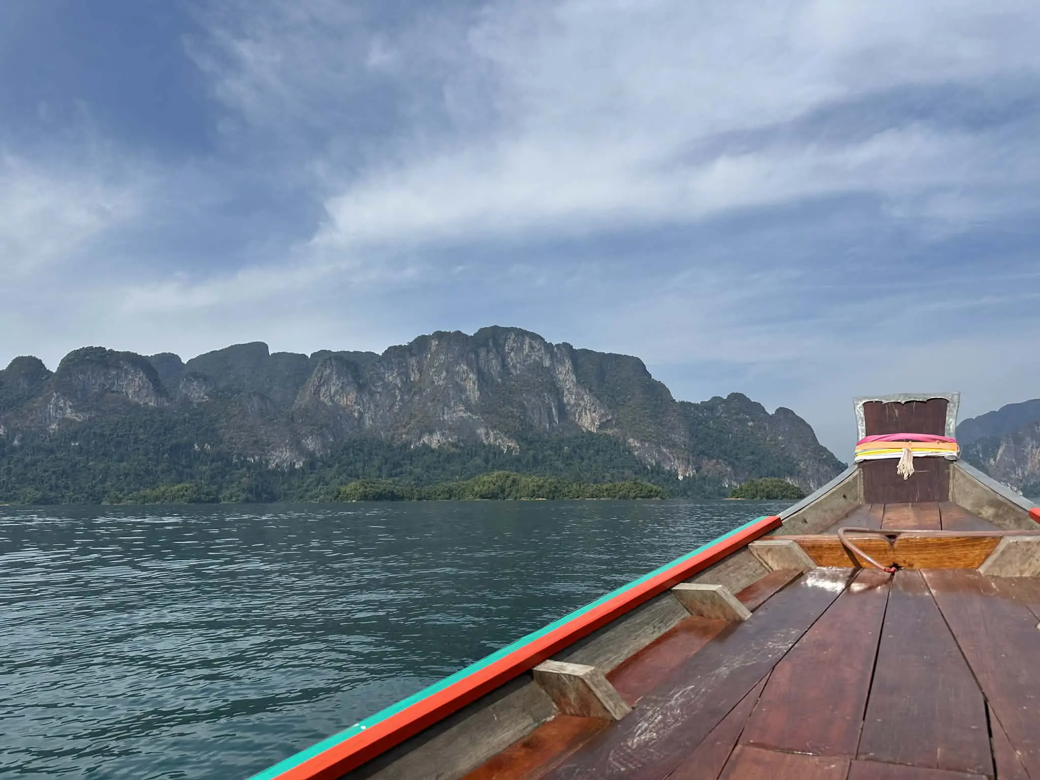 - เดินทางมาถึงเขื่อนราชปราภาและขึ้นเรือหางยาวเพื่อชมทิวทัศน์อันงดงามของหินปูนคาร์สต์ที่กุยหลิน