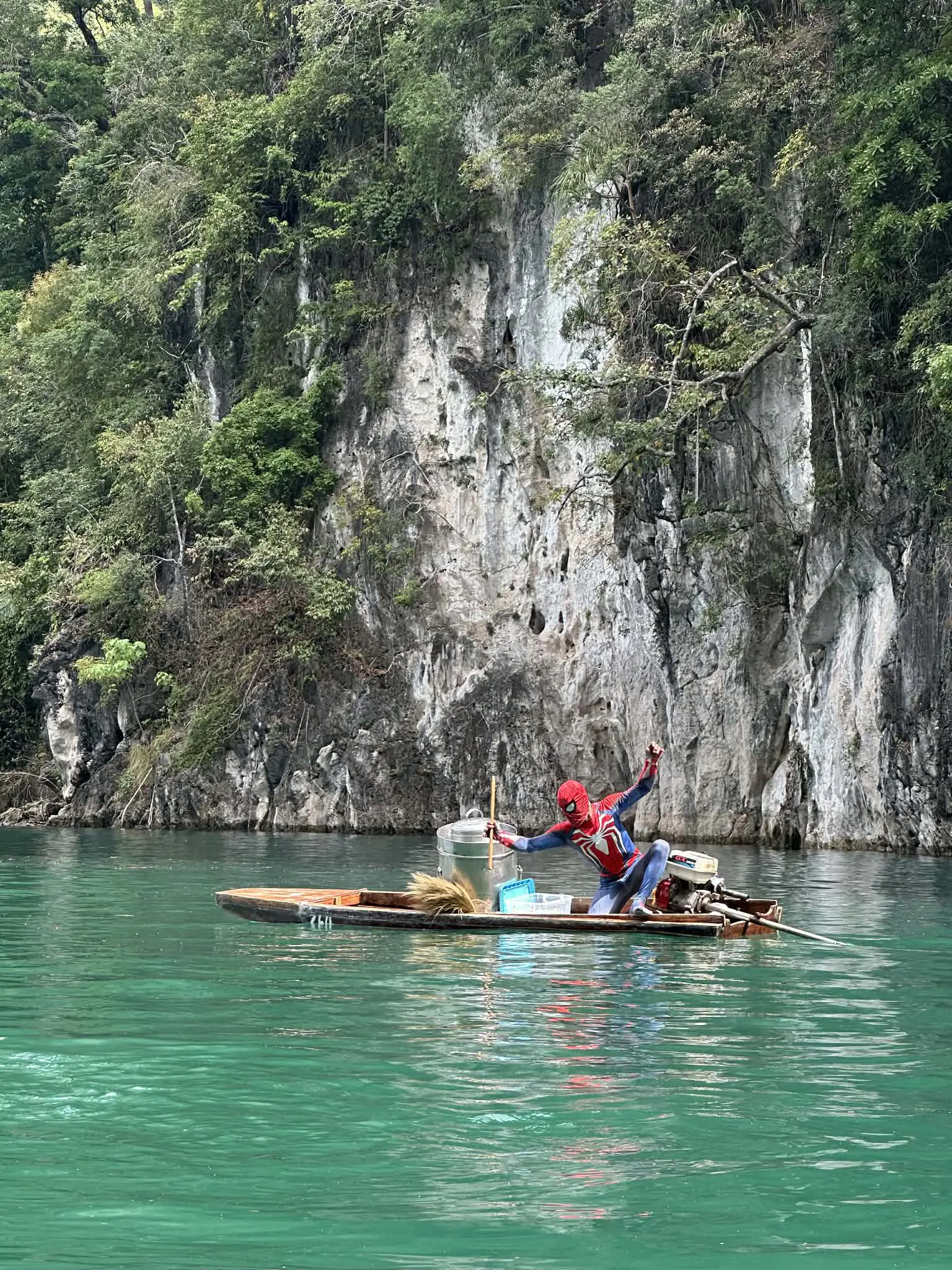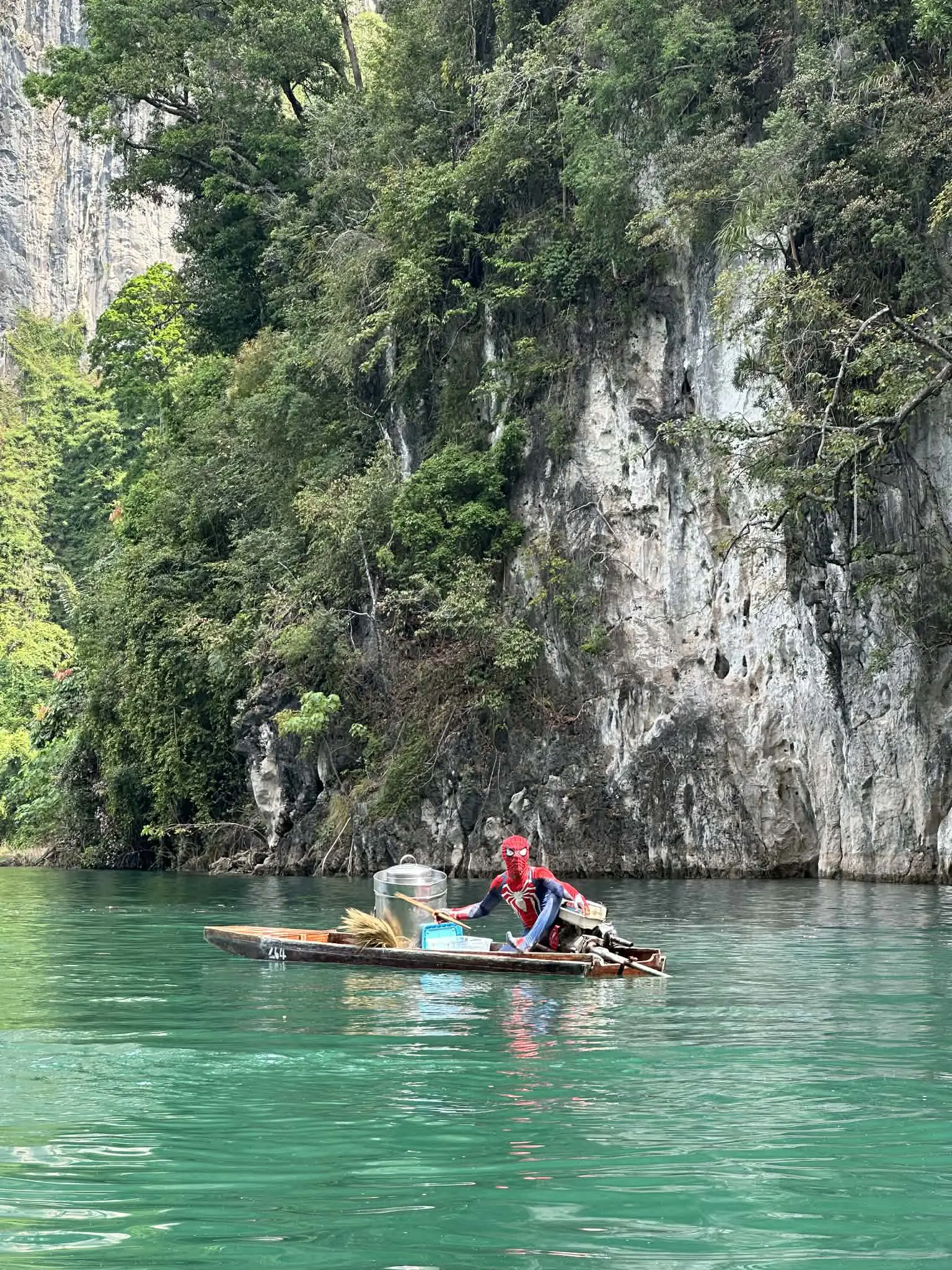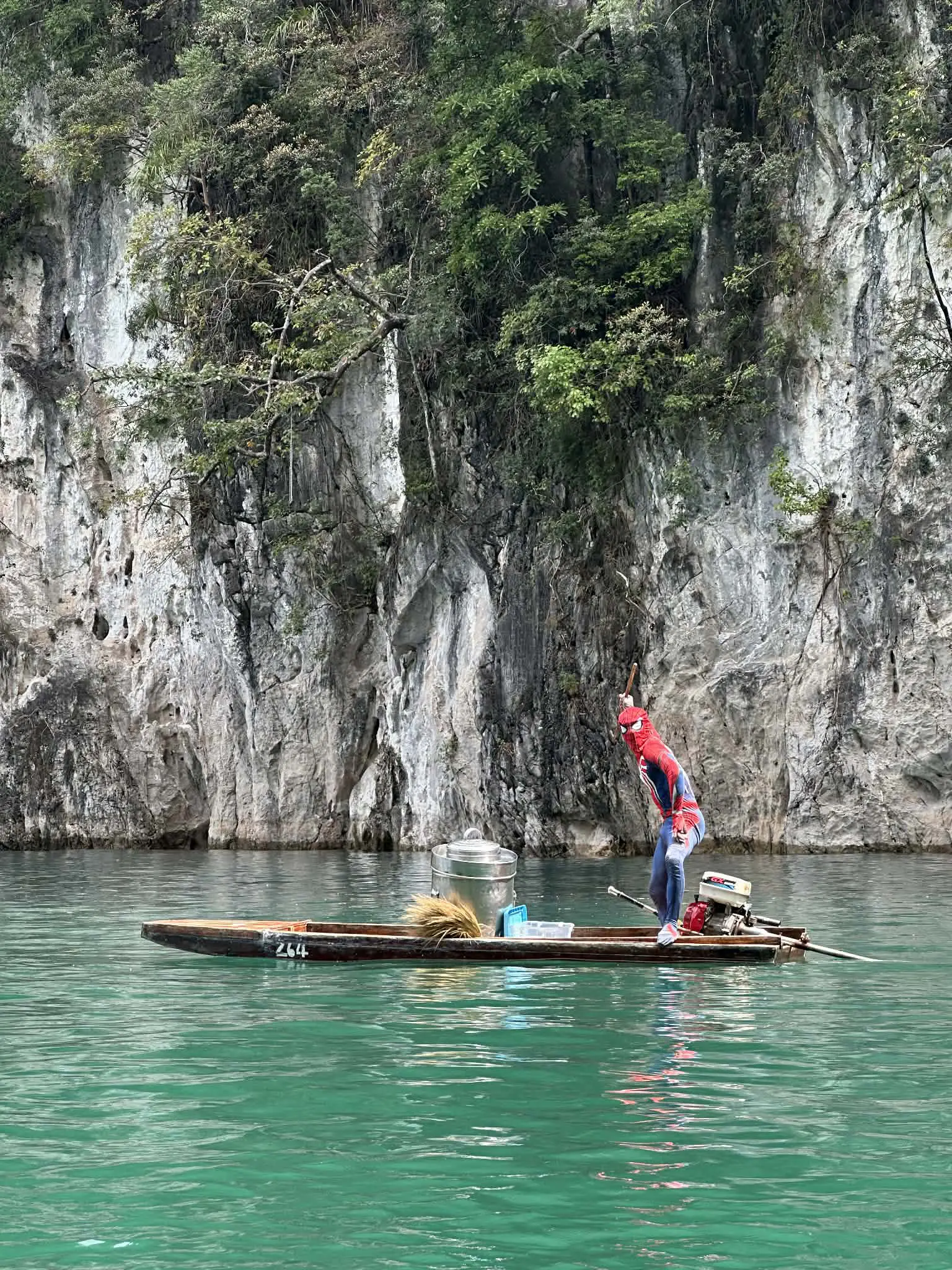 - เดินทางมาถึงเขื่อนราชปราภาและขึ้นเรือหางยาวเพื่อชมทิวทัศน์อันงดงามของหินปูนคาร์สต์ที่กุยหลิน